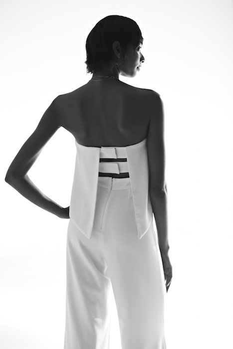 Having been influenced by his latest project, designing a hotel in Seoul Korea, Godfrey’s collection drew inspiration from architecture and interior design. The completely white collection showcased silks, linens and flexible tweeds in varying shades of cream, porcelain and alabaster. All of which stood out beautifully against the rich skintones of diverse models, highlighting the sensuality of Godfrey’s designs.