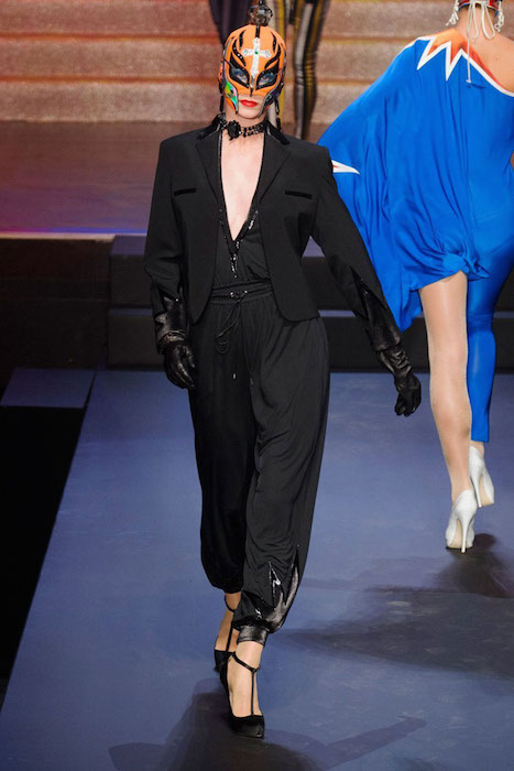 Jean Paul Gaultier bid adieu to designing RTW during ss15 PFW much to the dismay of fashion lovers. No need for tears though, L’enfant terrible is concentrating on couture! Dozens of Hollywood names gathered around for his final ready-to-wear show, all in celebration of his forty years of contribution to the fashion world. The show was a marvelous event set up as a mock beauty pageant show, and the models were dressed in honor of the eighties, urban culture, and even Lucha Libre.