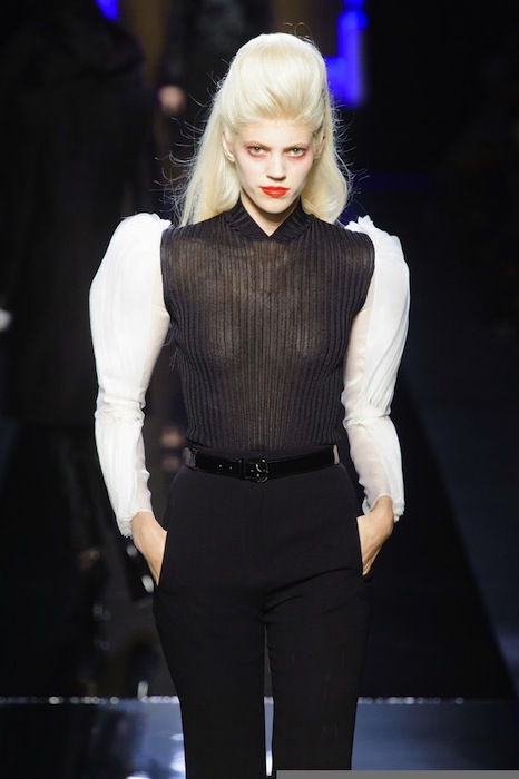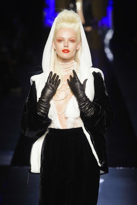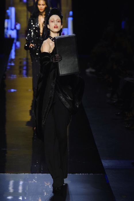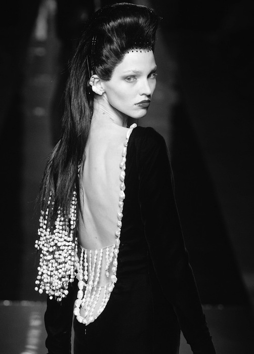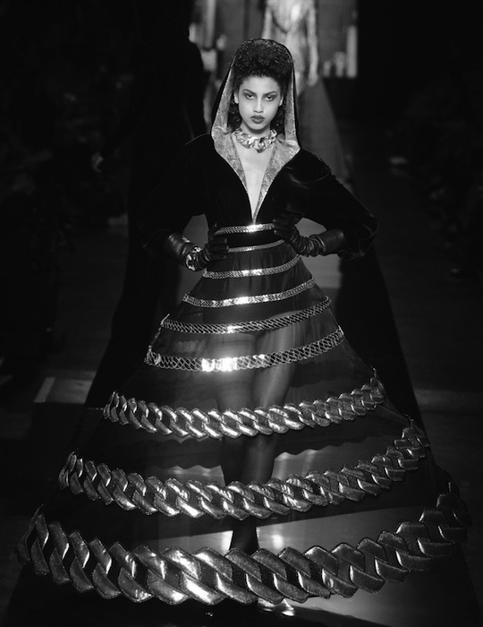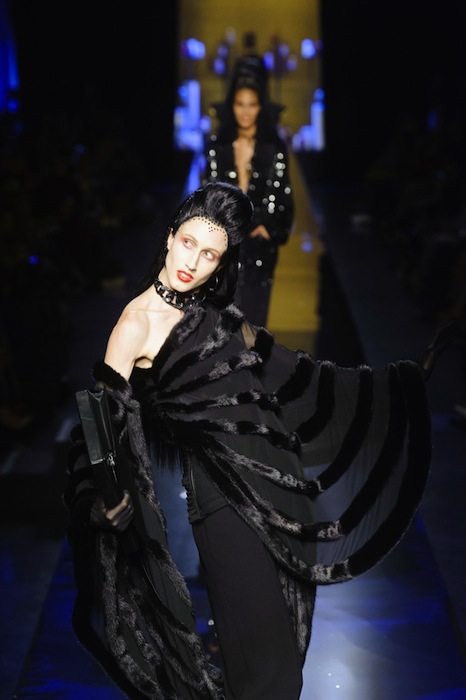 Anna Cleveland does [the Cleveland] in a gorgeously decorative black poncho getting everyone’s attention. Plenty of dark, sparkled, pleated, and puffed details in this one-of-a-kind collection. Gaultier continues to give our craving a drama dose. JEAN PAUL GAULTIER haute couture fall 2014 selects Brigitte Segura, written by Arielle Tipa.
