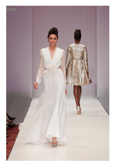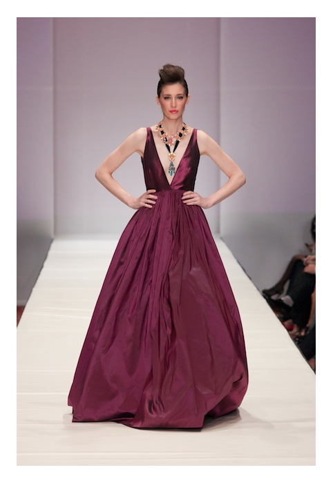 Jerri shares with us at Fashion Houston 2012: “I just really wanted to keep it fresh and modern, even with the make-up. I wanted to create a dress that you will still wear and love ten years from now. I pay close attention to keeping clean lines around the neck that pop with heightened accessories. That’s what women who buy my looks are searching for: something that can showcase their high-end jewels… and yes, Houston women love their jewelry too..”