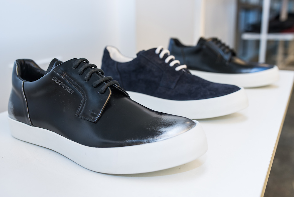A little twist from the runway for a minute – we took a detour to Glass Houses in the Chelsea Art Tower to take a close view of the Jil Sander fw16 collection shown during NYFW mens. Here’s an fdmloves exclusive view of what we loved, from gold sneakers to fuzzy boots in fall friendly rustic tones + hunter green. Lace-ups, pull-ons, studded, and cozy slippers… modern + cool.