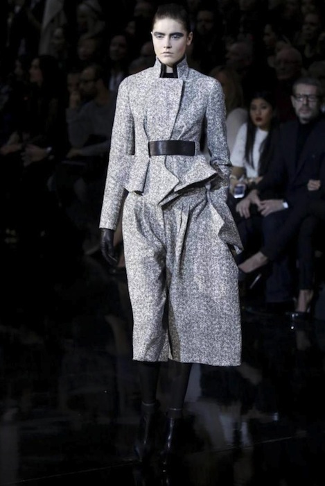 Held at the visually magnificent venue, Le Centorial, the John Galliano collection is no-nonsense for Fall 2013. The designer behind the label, Bill Gaytten, added some tough love to the traditionally drama laced look aimed at the hopelessly romantic. Front row featured model Adriana Karembeu, U.S. based jewelry designers Danielle and Jodie Snyder of Dannijo, and a host of French talent including actors Lambert Wilson and Elijah Semhoun, as well as recording artist Alizée.