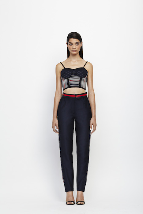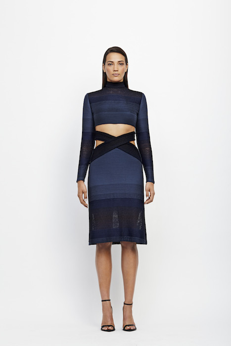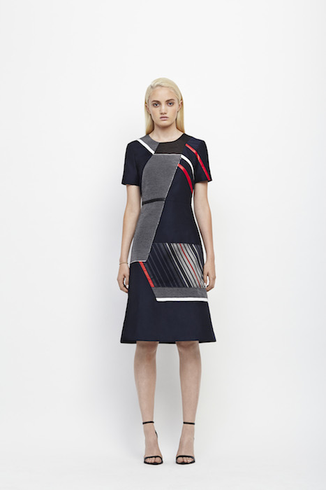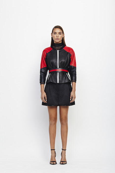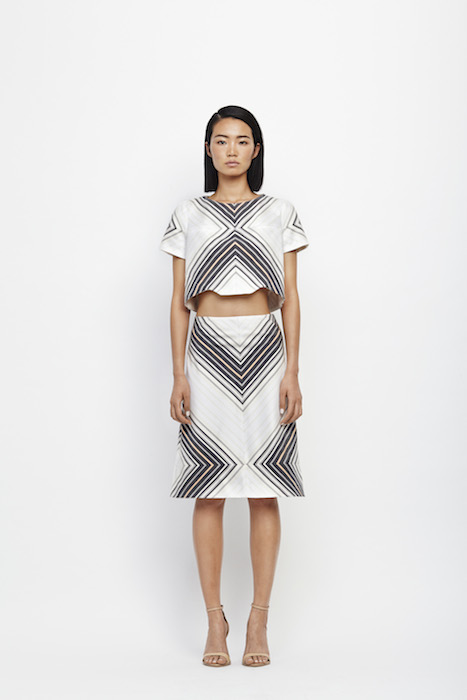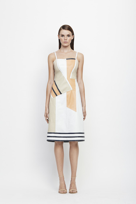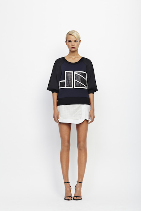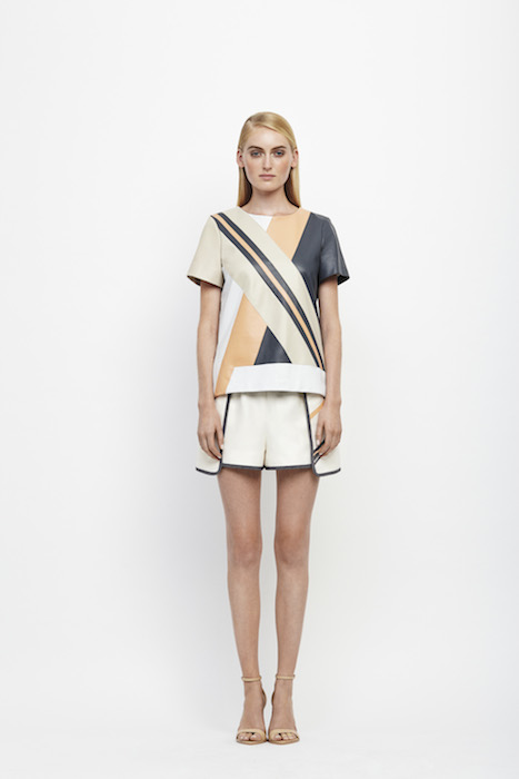 Sexy athleticism is alive and well in these shots from the Jonathan Simkhai’s Spring 2014 lookbook. Inspired by the infamous mods vs. rockers brawl at Brighton Beach in the 1960s, these duds also show a delicious clash between the two subgroups. Stripes in all different shapes and sizes create a lovely patchwork on dresses and matching sweatshirt-skirt sets. The use of leather is sporty and sexy all in one. A unique set for the upcoming season that’s too cute, comfortable and wearable.