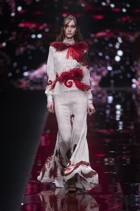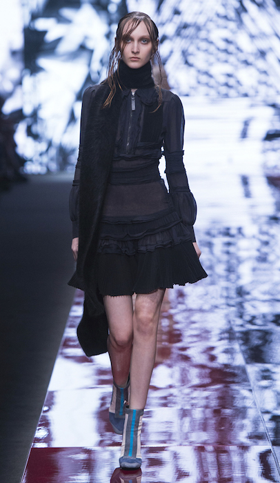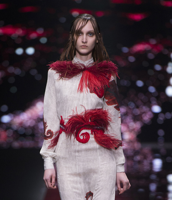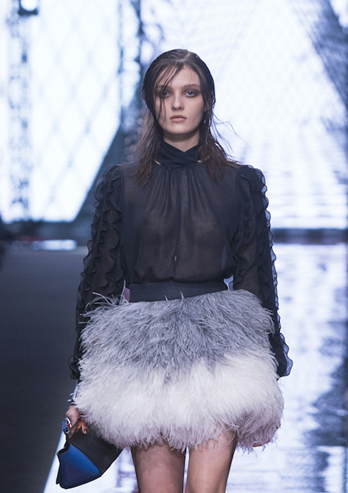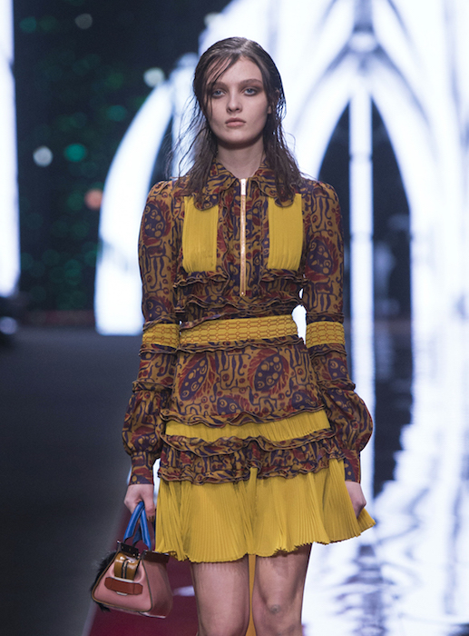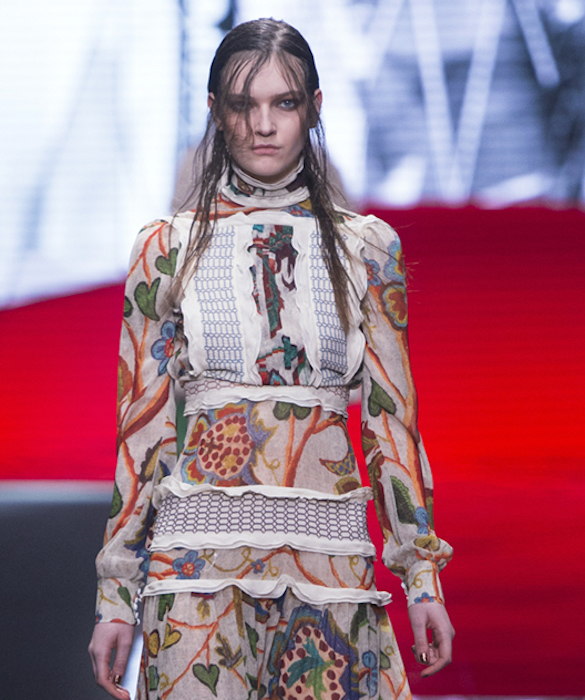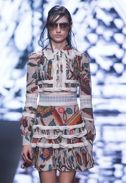 Freedom meets BOHO in a flirty Just Cavalli tradition for fall 2015. Wearable silhouettes include little dresses, flared minis topped with shearling and velvet coats. Combining a boyish edge with feminine flair, feathered embroideries add a little extra girly touch. VIP guests dressed in Just Cavalli included cutie Alexandra Richards, Lil Simz, and Atlanta de Cadenet.