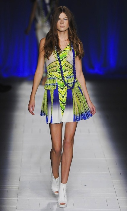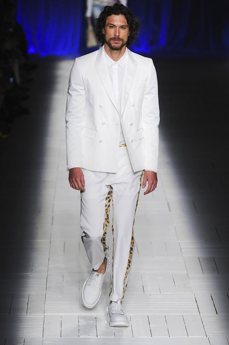 as we’ve come to expect, alot of patterns from the just CAVALLI runway for spring 2013 shown at ARCO della pace in Milan. a little more edgy than sister CAVALLI collection, we’re loving the open knit sweaters and wearable bling for this season. a few of our favorite looks include the patterned sassy number cara delevingne is sporting, and a couple of blue + whites for the guys to love too. fdmLOVES selects from JUST CAVALLI ss13 runway by brigitte segura.