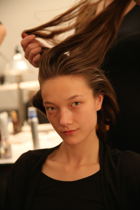 Taking influences from architecture, geometry and art, the collection provided a minimal approach to structural style. Classic silhouettes were revamped with asymmetric hemlines and geometric paneling, giving way to peekaboo mesh and leather.