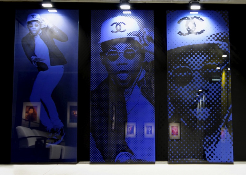 Karl Lagerfeld, the jack of all trades, has now extended his mastery into a red hot medium- fire! Karl Lagerfeld: Fire Etchings, one of Karl’s latest projects, features a series of “contemporary portraitures” of modern famous faces such one of his favorite models Freja Beha Erichsen, along with Aymeline Valade, and fresh rapper phenom Theophilus London. Uniting Lagerfeld’s photographic prowess with the wild medium created an eye-catching result. Each mega-portrait was formed by etching the image onto the slick surface with the help of fire, then creating a glowing look through lights shining behind the backlit glass.