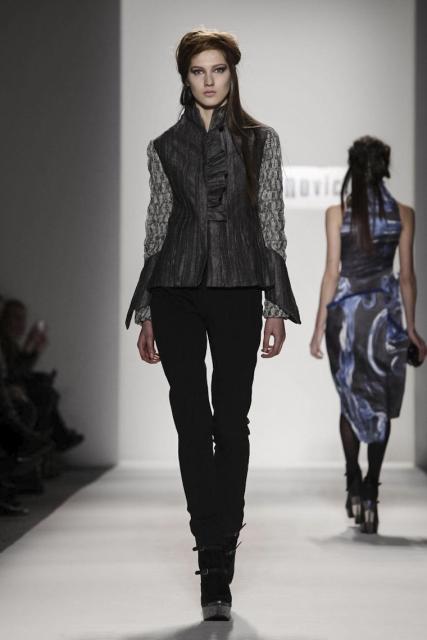 The rush fashion week brings us is one that can only be topped with the incredible artistry of the clothing that is presented by the 90-plus designers that work hours on end to create the looks on the runway. Romantic designer Katya Leonovich brought her 2013 Fall Collection to life, at the Mercedes-Benz Fashion Week runway at Lincoln Center on February 9, 2013. Leonovich added an edgy dynamic with a little eccentricity into her runway looks.