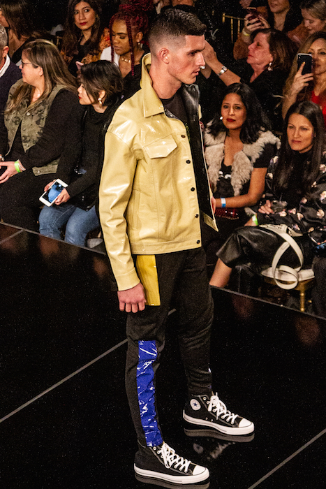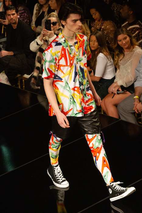 GOOD VIBES come in MULTICOLOR at RICARDO SECO for fall 2019. With a knack for injecting us with happy colors, Seco’s catwalk was filled with playful styles designed for men and women. Leather, oversized puffy jackets with neon details, t-shirts with sassy messages, and wearable fun in his signature conversational patterns.
