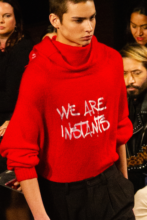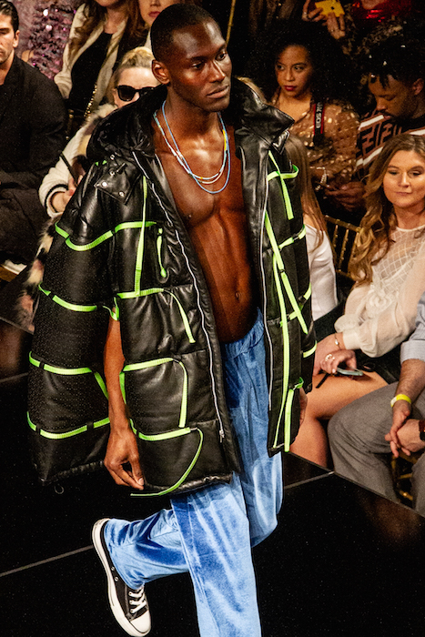 from the editor: So much fun, I sported the oversized BEE and electric blue puffy jackets from Ricardo’s previous collections during NYFW fall 2019 collections. (check out the IG + stories for my outfits).