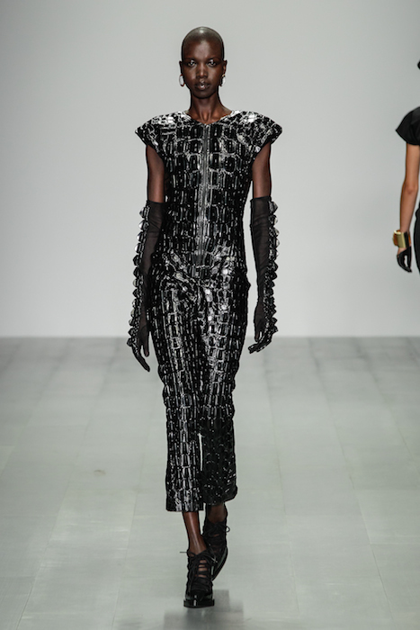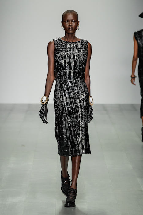 Referencing women GeorgIana Duchess of Devonshire, Lady Hamilton, Emmeline Pankhurst, Jane Addams, C J. Walker, Simone de Beauvoir, Peggy Guggenheim, Georgia O’Keefe, Germaine Greer, and Aung San Suu Kyi. Hair by Nick Irwin for CATWALK BY TIGI, make-up by Andrew Gallimore for Maybelline New York, nails by Michelle Humphrey for Maybelline New York and Music by Nid & Sanc