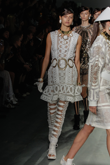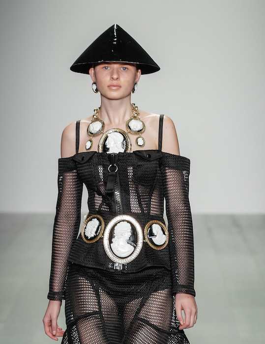 Graphic + Bling got Cameo attention and hardware never looked so bling friendly. Designer Marjan Pejoski got our attention again for KTZ spring 2015 during London Fashion Week. A blast from the past taking us to a new future, “the craft and supreme artistry of Josiah Wedgewood and Robert Adams are celebrated throughout the collection.” VIPs including PALOMA FAITH, M.I.A., and Zandra Rhodes came to celebrate this eclectic modern collection.