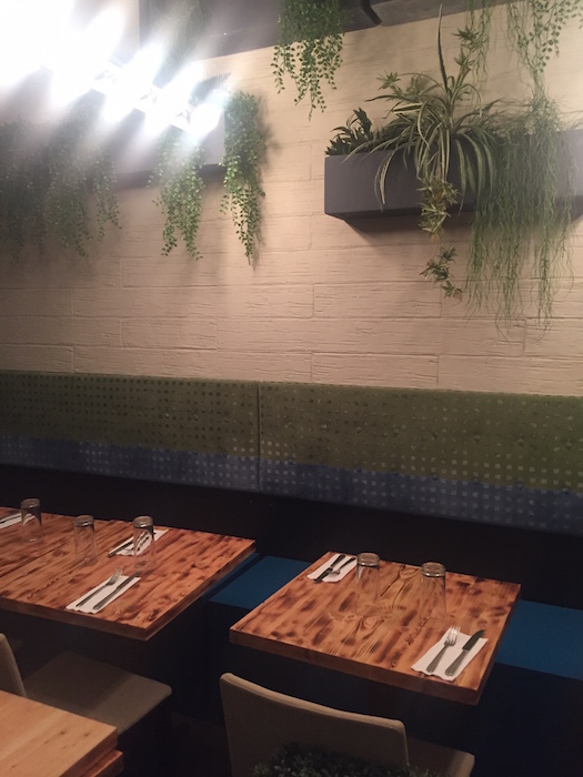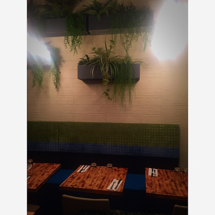 Easy to get to from downtown, my friend Lau + I arrived at a cute and minimal spot uptown. No weird smells, a cute terrace, decent enough DECO for a date, a visible bar, and dogs allowed! YAY! Didn’t feel like an alternative restaurant vibe at all. After scoping the menu for a bit, I realized I didn’t really know what half of the items were. I did find some typical items like guacamole, vegetables and Quinoa, and was so curious about what the other items were. After all, they had to be non-meaty, so maybe I could get lucky with a saucy meal and no gluten.