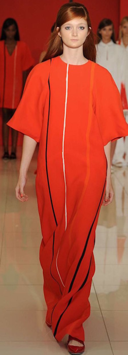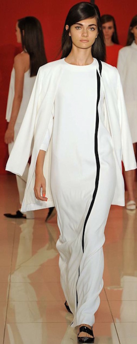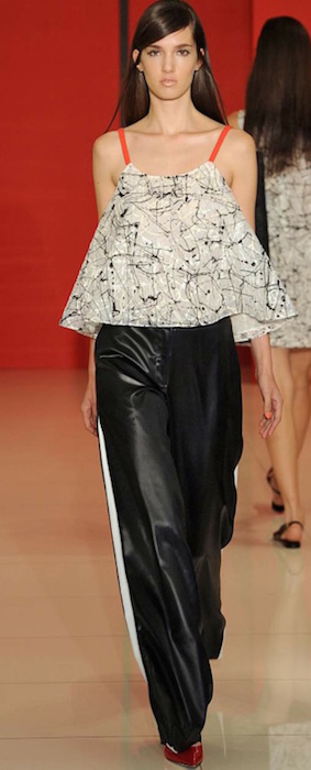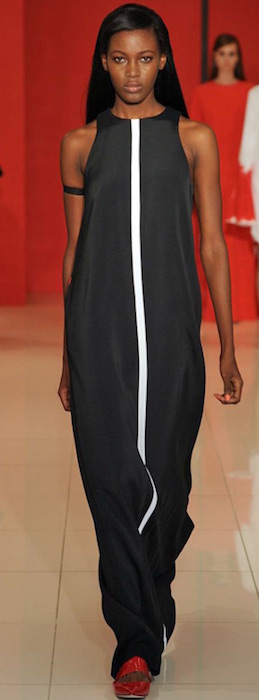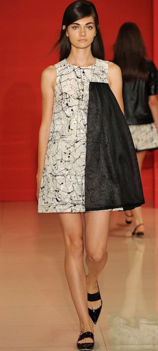 Portraying her passion for art, Perry’s current inspirations are showcased by the clean vertical lines and bold colors of Barrett Newman along with the chaotic splashes & drip painting approach of Jackson Pollock. Lisa Perry’s eye for style comes alive in her collection. Effortless + classic pieces with decorative details including side zippers, with hair styled flashing 60s appeal to complement Perry’s modern touch.