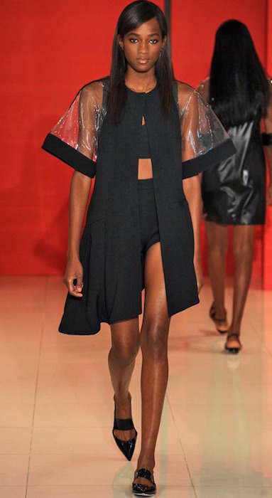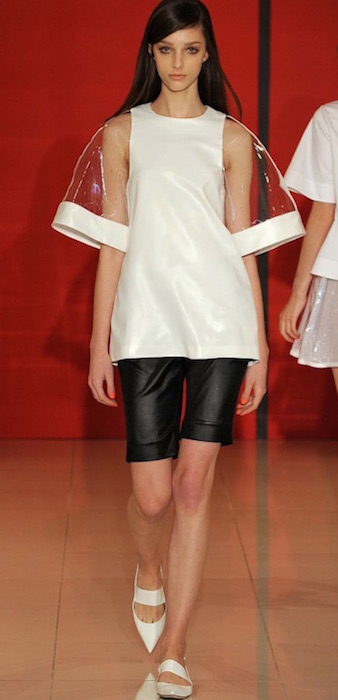 Fashion meets Art in Lisa Perry’s Spring 2015 Collection. Simple cuts, sophisticated designs and clean lines were prominent in the collection. Exaggerated sleeves, clear vinyl, and splashes of graphic patterns add to the 60s style aesthetic.