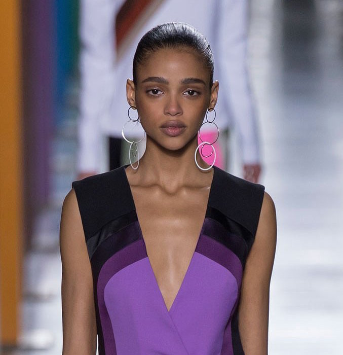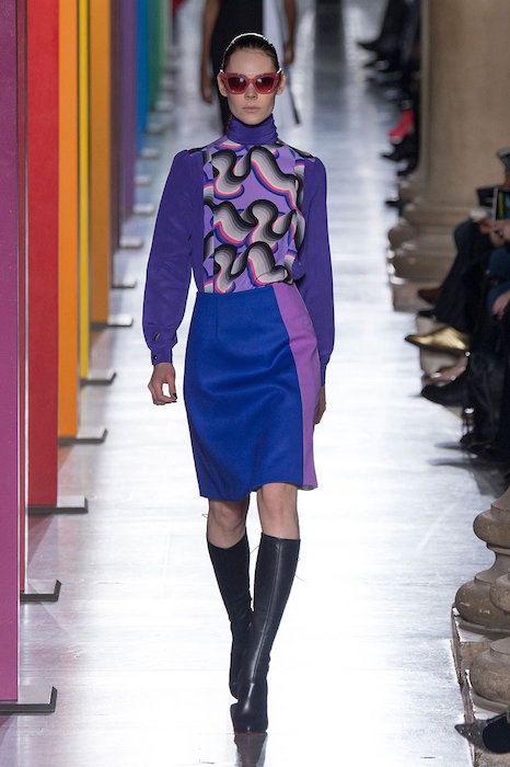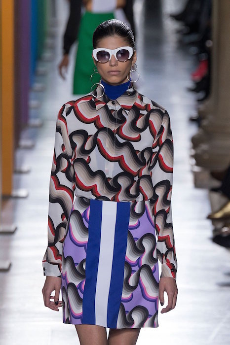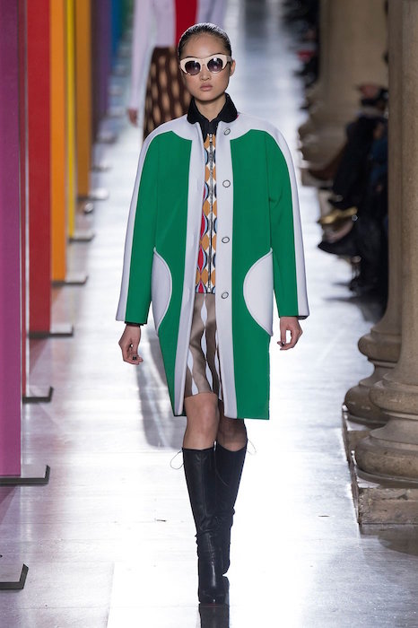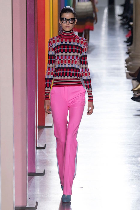 …taking the pink to Hot + fluo, JONATHAN SAUNDERS takes us to a psychedelic 60’s journey. Mod-inspired color blocks mix with oversised retro patterns in bold tones with unfussy silhouettes for clean cut fun. (Um, Aya Jones looks like an angel here).