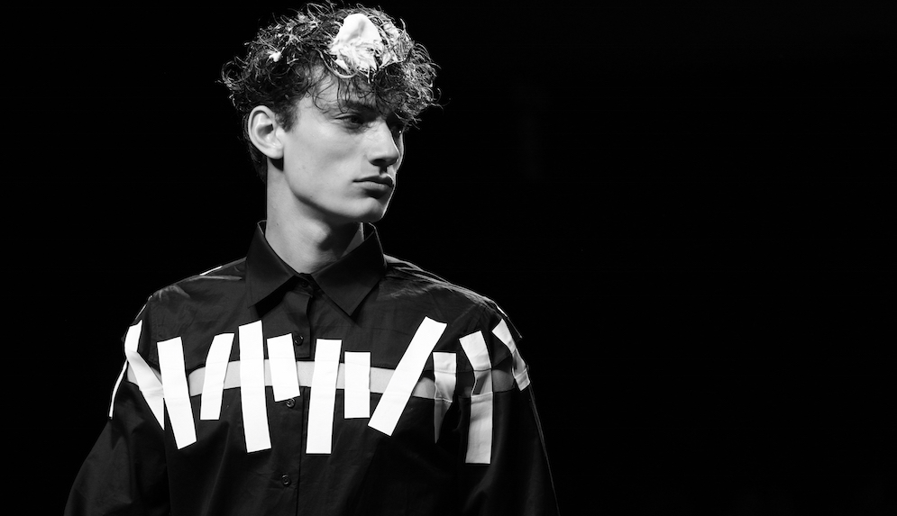 Christopher Shannon carried monochromatic to the next level with pitch black and white highlighted with pastel green and pink. Shirt tails graced the models of the lovely men to our delight. Clever graphics and comfortable crewneck sweatshirts were paired with bright shorts.