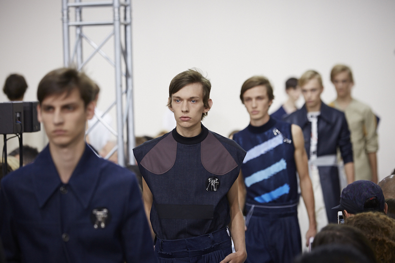 JW Anderson brought us to a world of denim accented with blood red. An underlining Asian influence was evident, stunning and went so far to showcase a karate gi. The electric blue and numbers printed on certain pieces played a dynamic role.