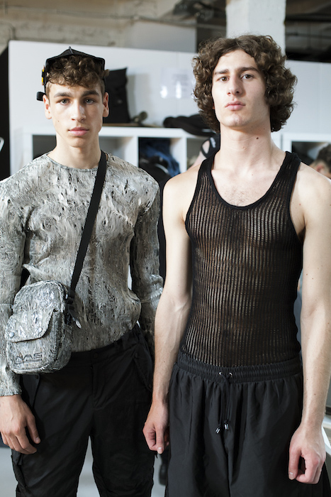Agi & Sam splashed black paint and left room for stars on their models that already had us seeing parts of the galaxy. Blue, white, gray and sand colors were beautifully adorned with bags that only led us to believe that whatever was in there had to be equally as pleasing.