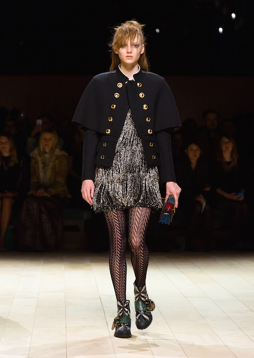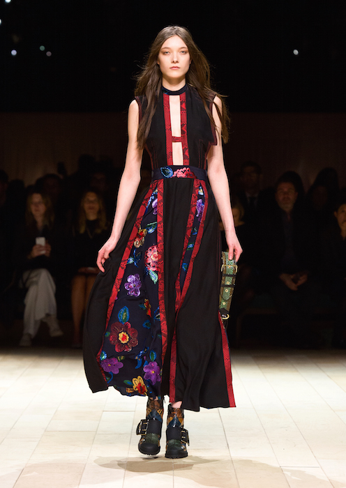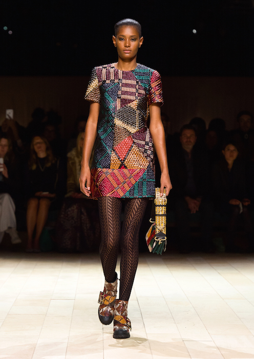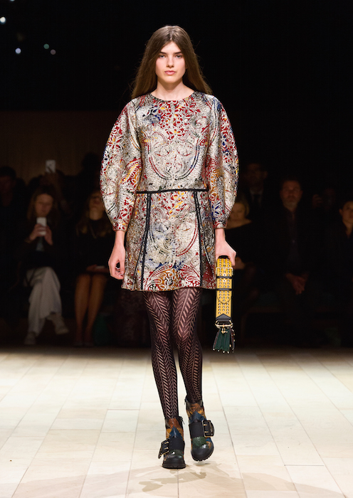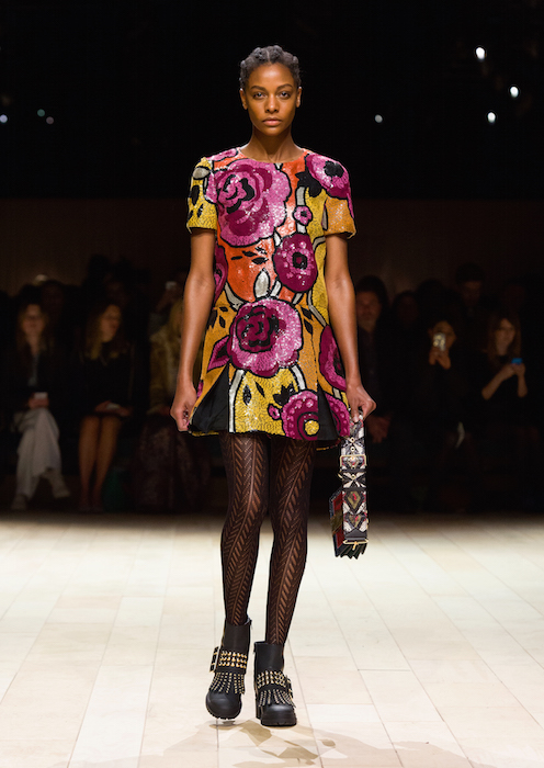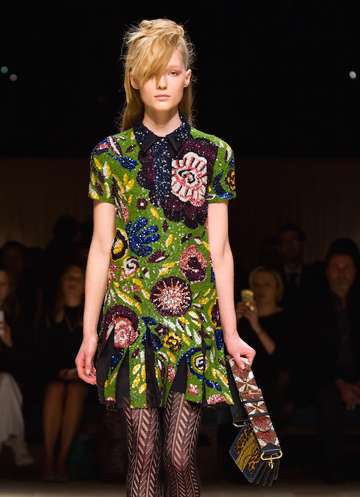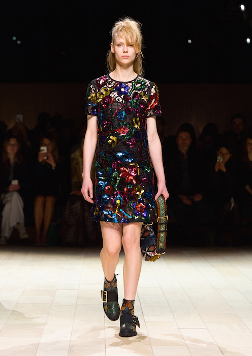 A quick glimpse at the London Fashion Week runway at Burberry womenswear fw16 LFW. Sequined, floral, textured and sassy for the season. the “A PATCHWORK” womenswear collection features a mix of patterns and textures influenced by British artists, musicians and history.