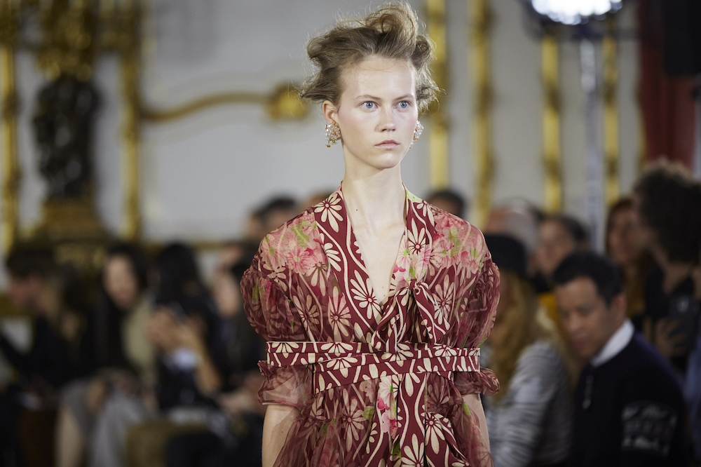 From the other side of the pond, here are some sparkled and cheeky highlights from the LFW runway. From Fashion Week Icons like Vivienne Westwood, classics like Pringle of London + Burberry, to today’s cheeky Brit flavors including Simone Rocha, we took a look at a few sparkled, flowered and fun collections.