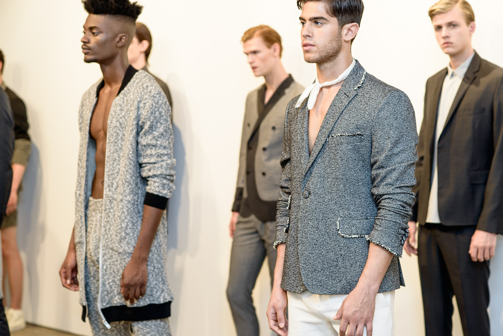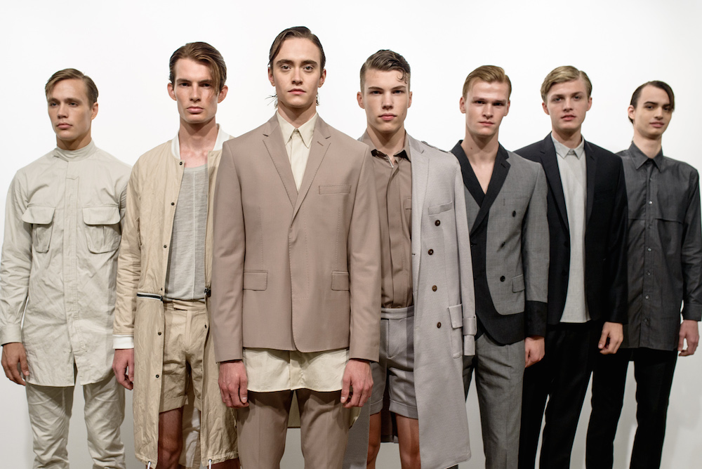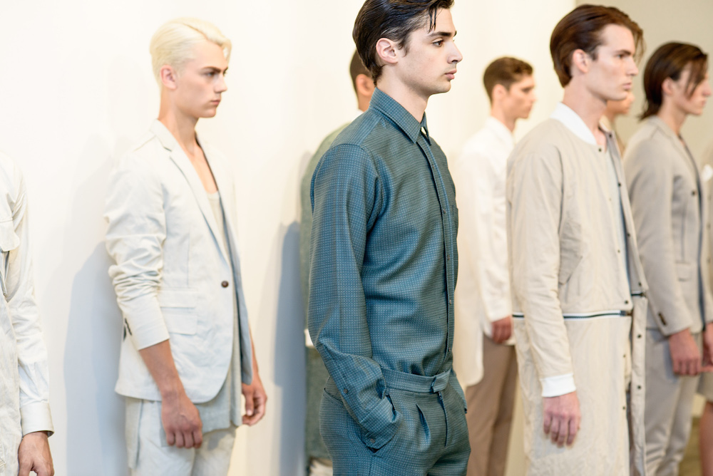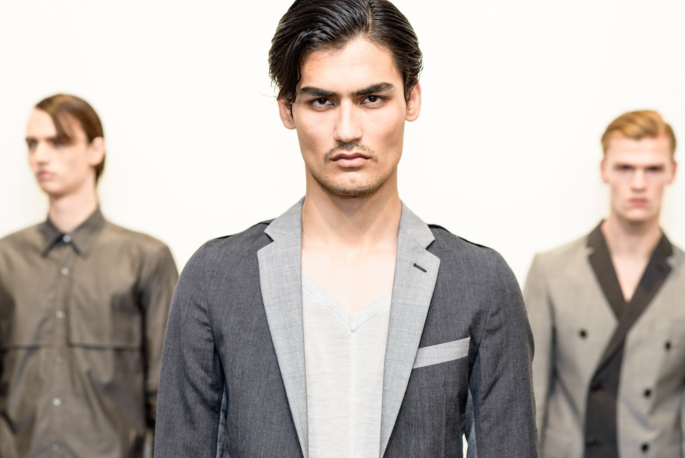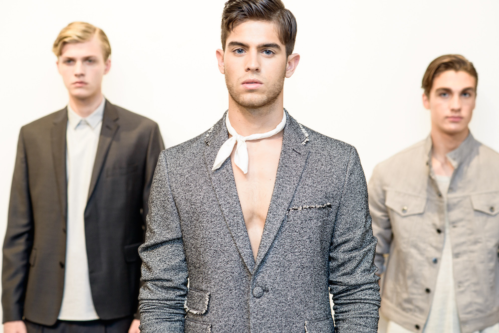 As jackets rested over the shoulders of the clean cut models standing in front of a pale white wall, the military style tailoring added a badass flare to a simple suit that speaks for itself. Diran made the unlikely mix of pocket squares, shirts and shorts acceptable for an everyday look. Crisp cuts and comfort meet at a crossroad as a spot on representation of the ideal menswear collection this season.