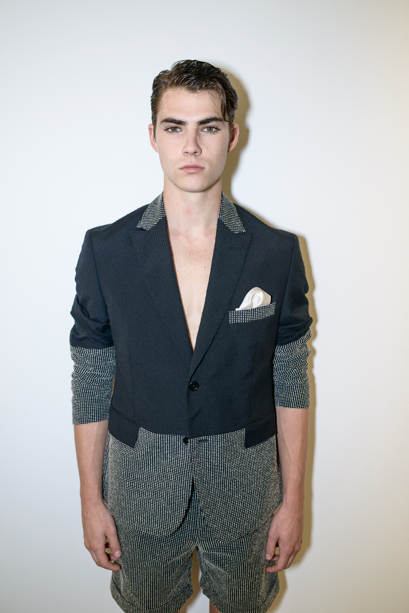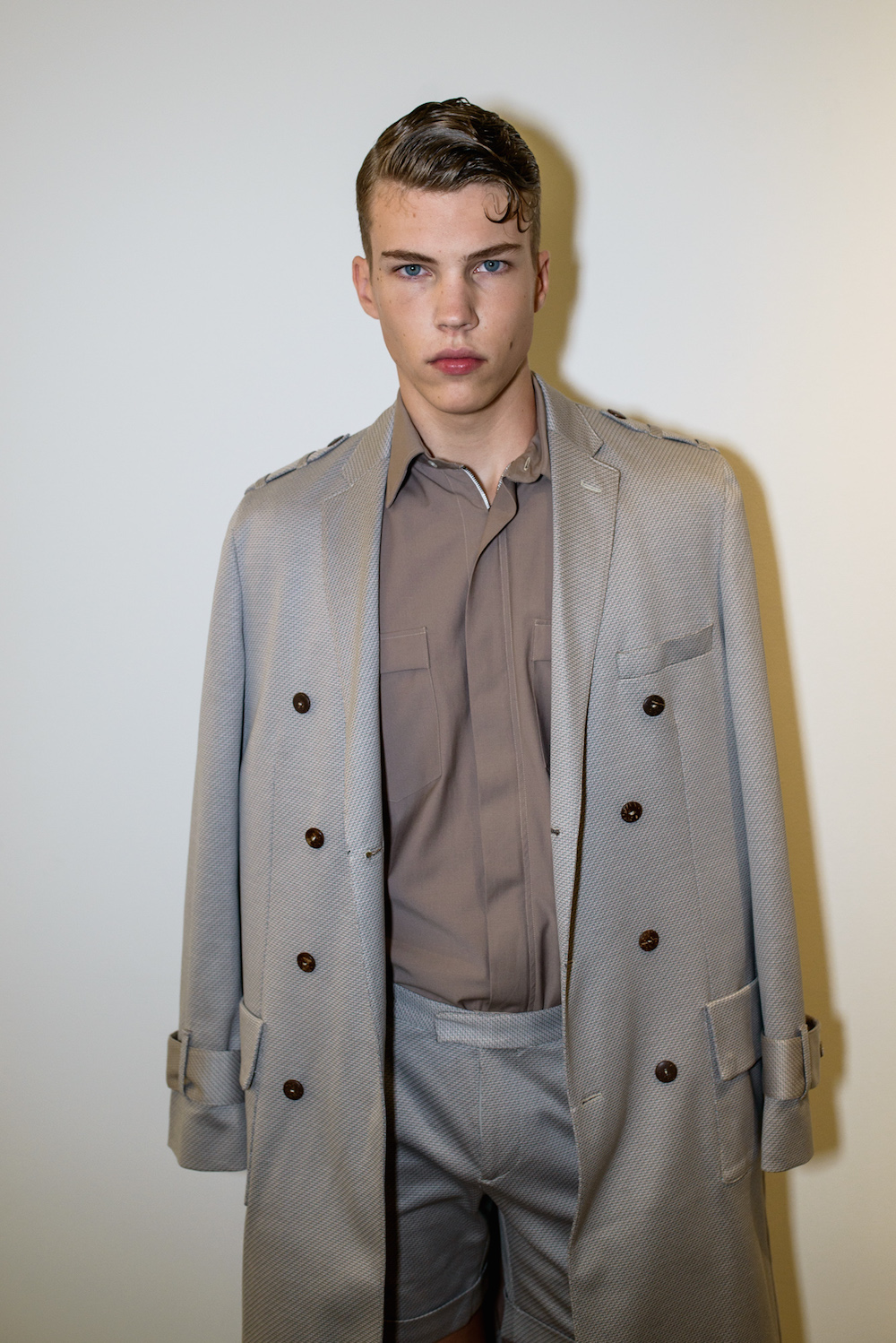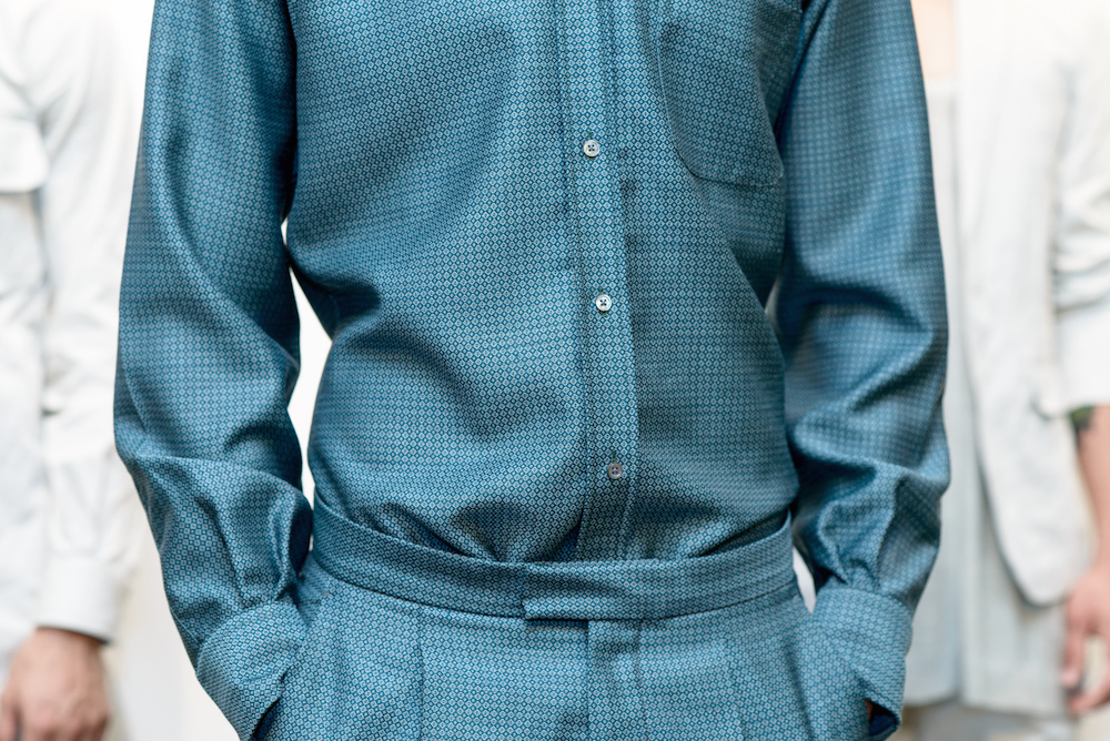 As jackets rested over the shoulders of the clean cut models standing in front of a pale white wall, the military style tailoring added a badass flare to a simple suit that speaks for itself. Diran made the unlikely mix of pocket squares, shirts and shorts acceptable for an everyday look. Crisp cuts and comfort meet at a crossroad as a spot on representation of the ideal menswear collection this season.