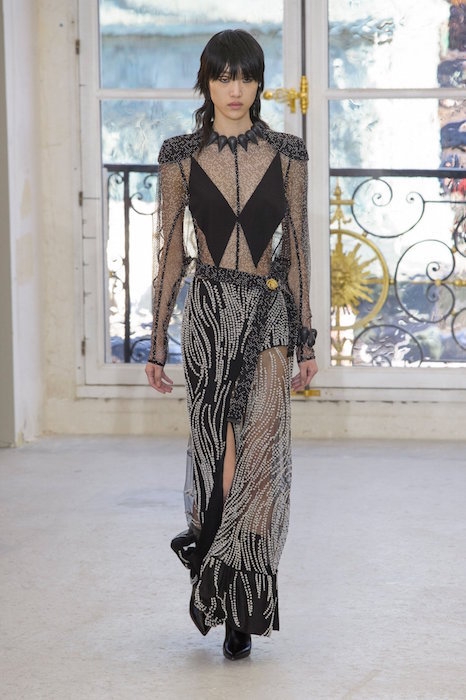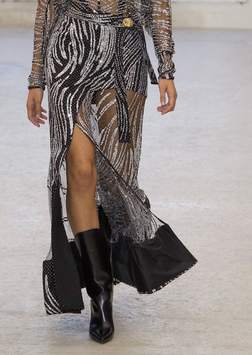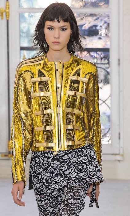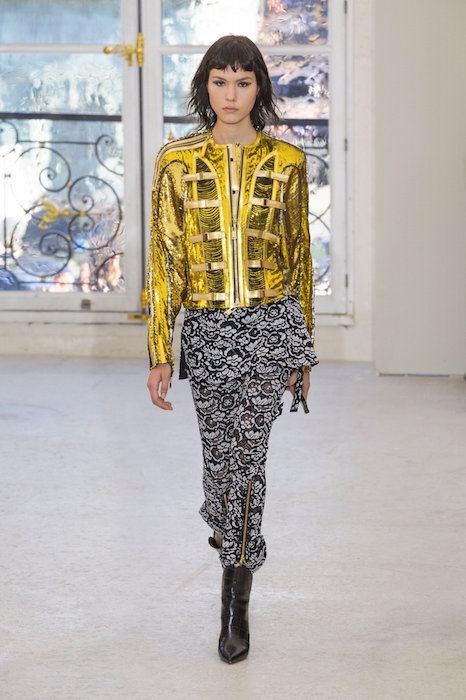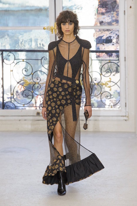 A glimpse at some Louis Vuitton gold. The modern vibe a la Nicolas Ghesquière for ss17. A twist of sparkled sheerness, a little cut-out lace, sparkle and a lot of attitude.