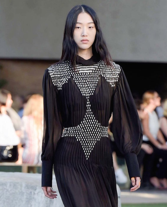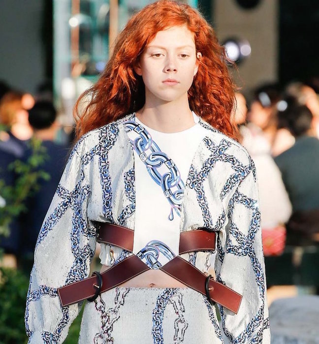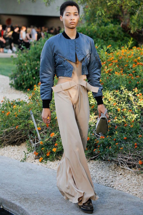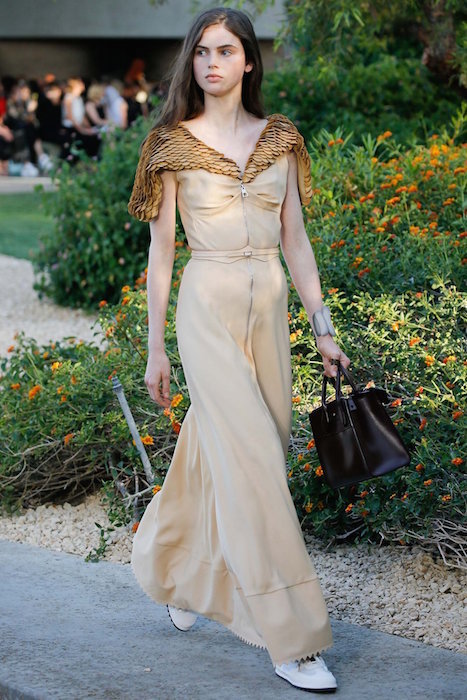 Fresh forward at LOUIS VUITTON for resort 2016, set in Palm Springs. Pretty girls, boho chic styles, stars and lots of pants on the new LV runway. Textures mix with sweet patterns in a demure relaxed Chic. Fresh + familiar faces include our favorite pink haired girl Fernanda Ly, Mica Arganaraz, Malaika Firth and Julia Nobis sporting the very wearable and likeable Louis Vuitton collection. Here’s a look at our favorites.
