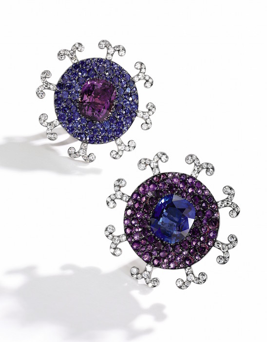 A pair of amethyst, Ceylon sapphire and diamond ear clips, JAR Estimate CHF 200,000 – 300,000 / $ 200,000 – 300,000.