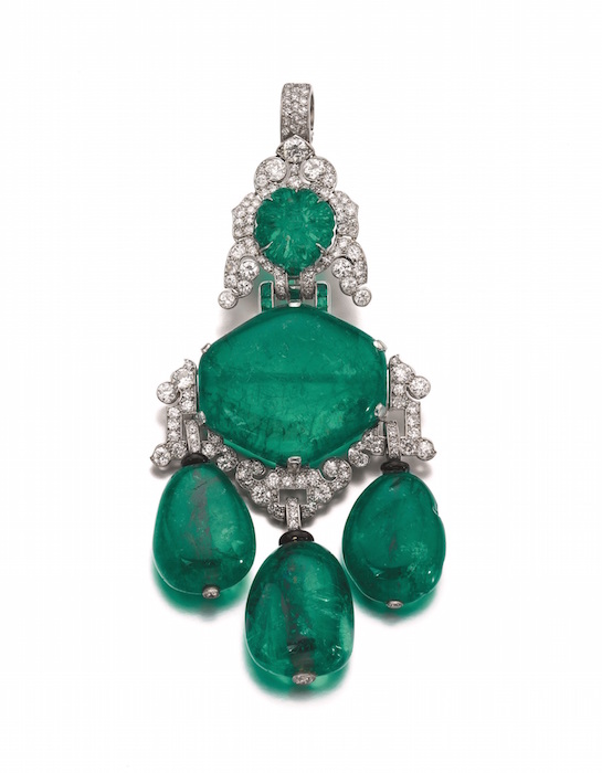 An emerald and diamond pendant/brooch combination, Cartier, 1927 Estimate CHF 150,000 – 250,000 / $150,000 – 250,000.