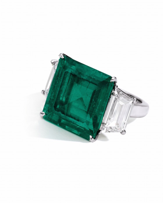 An emerald and diamond ring, Cartier The Colombian emerald weighing 9.39 carats Estimate CHF 200,000 – 300,000 / $ 200,000 -300,000.