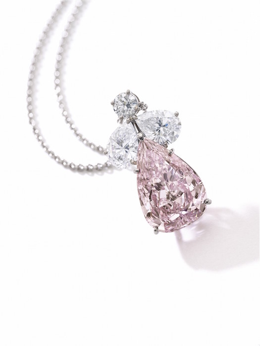 A Fancy Intense Purple-Pink diamond pendant The pear-shaped diamond weighing 6.03 carats Estimate CHF 2,500,000 – 3,500,000 / $ 2,500,000 – 3,500,000