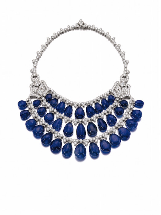 Formerly in the collection of Faith Domergue A sapphire and diamond necklace by Bulgari, 1970s Estimate CHF 300,000 – 500,000 / $ 300,000 – 500,000.