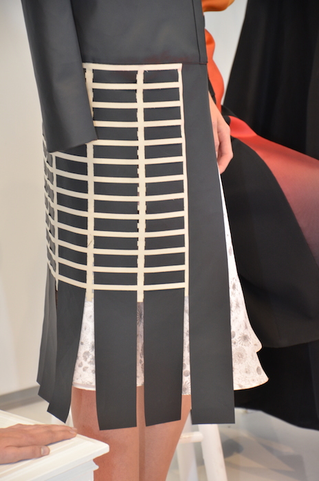 Twenty-something young designer Mathieu Mirano gets our attention once again. This season, he fuses clean geometric and futuristic materials and shapes with dainty, delicate and feminine details. Here’s an exclusive view of some of the wonderful textures and silhouettes, captured by Andrew Werner for FashionDailyMag.