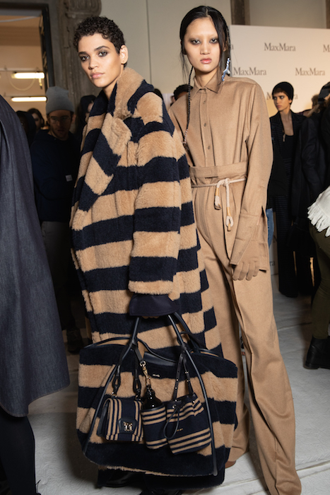 A detailed glimpse from the Milan runway. Maxmara’s timeless elegance on the runway, accessorized for function. Here’s a a glimpse behind the scenes, including Kaia Gerber and Bella Hadid. Story and more to come!