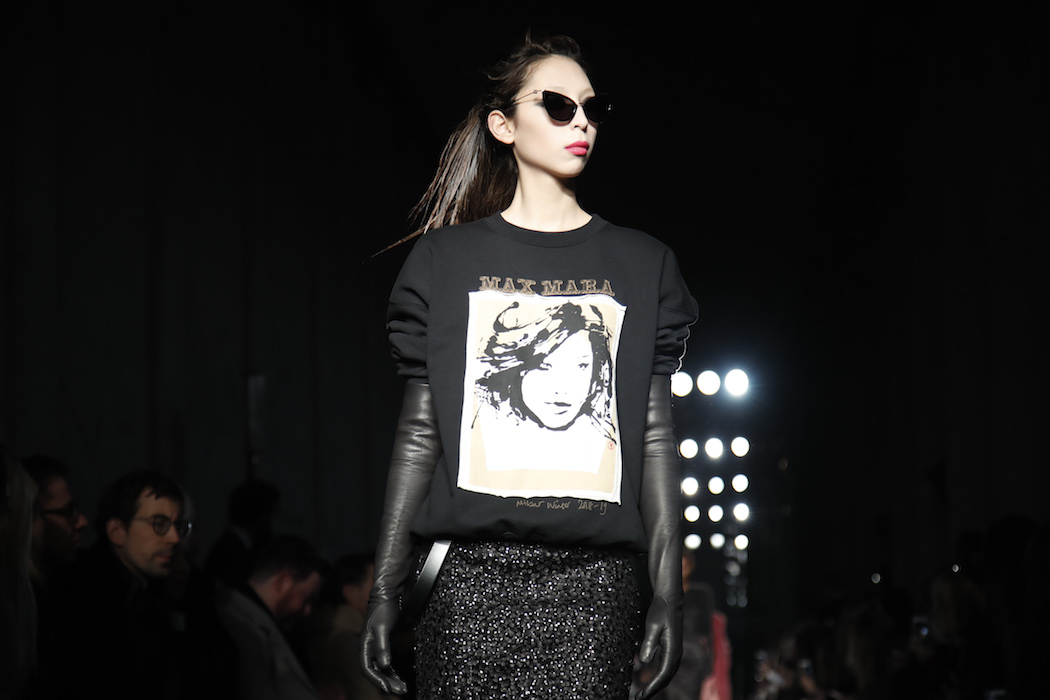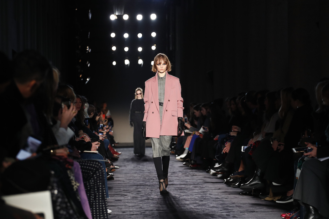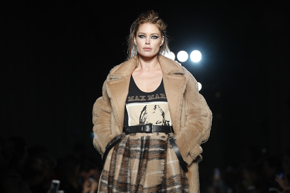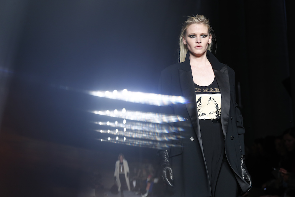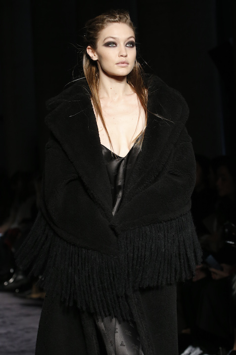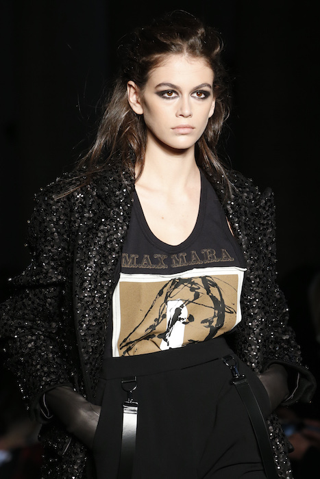 Menswear vibes never looked so hot. A fringe here, a sparkle there and an artsy bit with an all star cast on the MAXMARA fall 2018 runway during Milan Fashion Week. Gigi Hadid, Lara Stone, Doutzen Kroes, and Kaia Jordan Gerber were a few of the girls strutting the 80’s menswear vibe styled by Carine Roitfeld on the Maxmara fw18 catwalk.