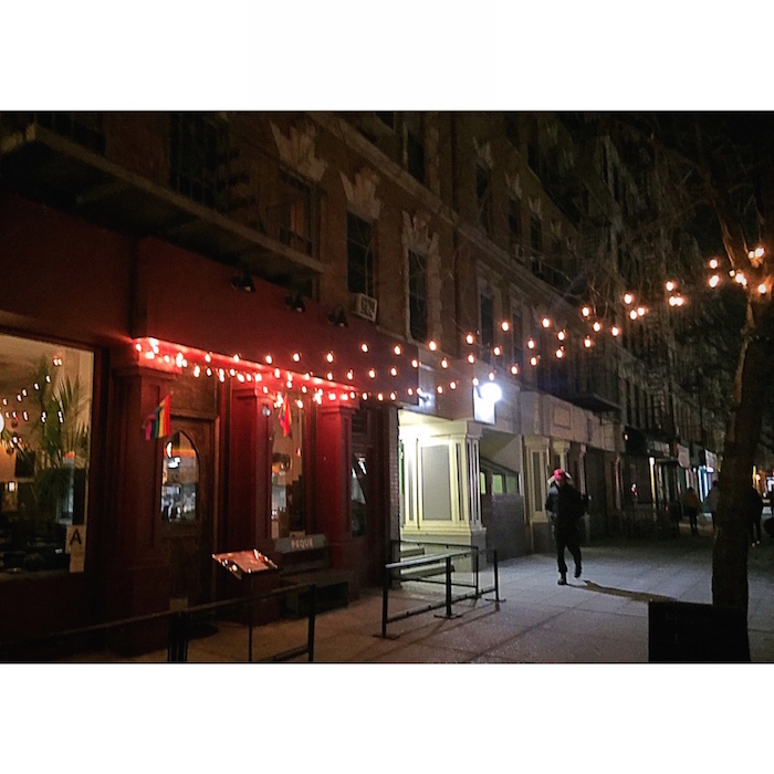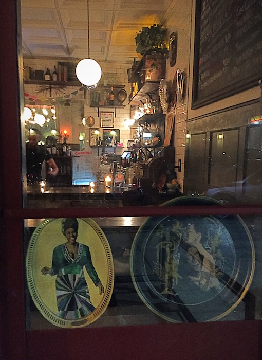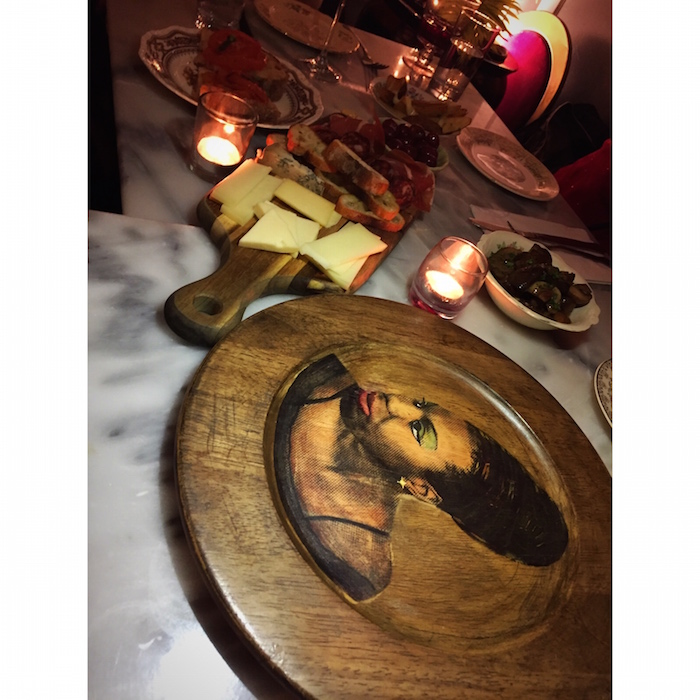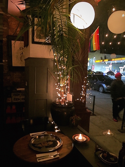 Though Harlem is a bit outside of my typical navigation for food in the city, the train ride far uptown made it feel even more like an escape from the city. I was instantly smitten by the charming lights + rainbow outside at Peque restaurant, the with the vintage deco and bar. The Orange Cava Mimosa (above) with custom chargers by Harlem artist Ollomatic.