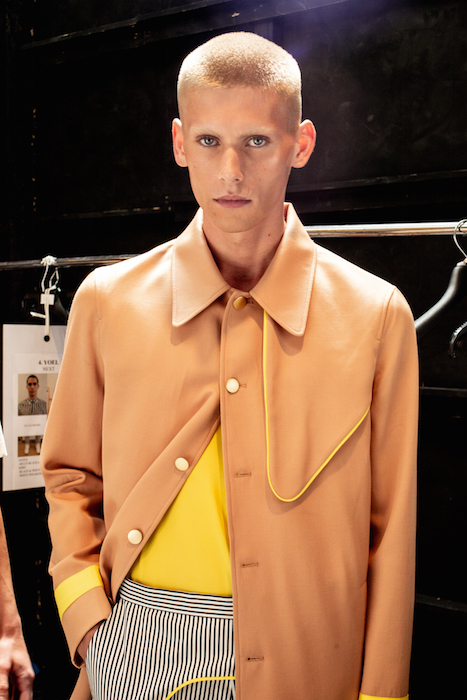 A favorite for men, Carlos Campos continues the color blocked story for spring 2019 menswear. The neutral pale collection this season is grounded by a rich eggshell white with an earthy taupe and my favorite – sunny yellow!