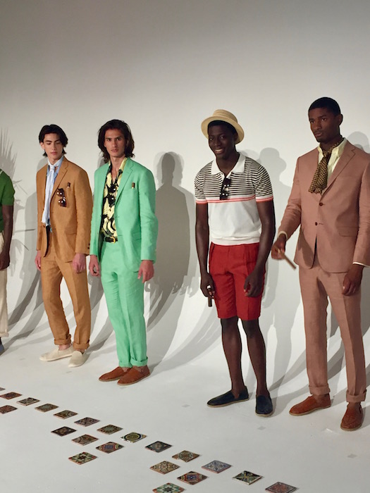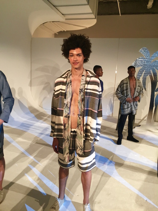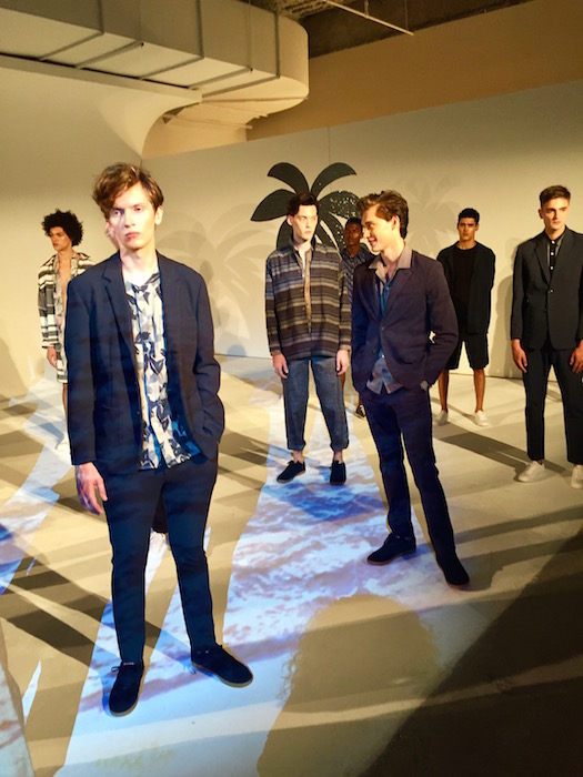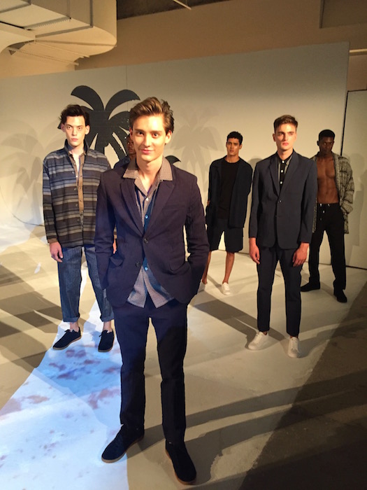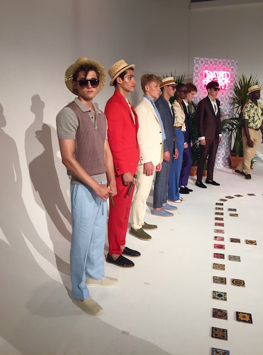 We were transported back in time to Havana with David Hart’s tropical 50’s inspired collection. Models rocked fedoras, sunglasses, and a cigar in their breast pocket just for show. The mint suit was a standout along with the summery tones we’ve grown to love, lightened in saturation of colors this season. A very dapper (junior) joined the show sporting a look, complete with a cigar. A breath of fresh air screaming gentleman summer.
