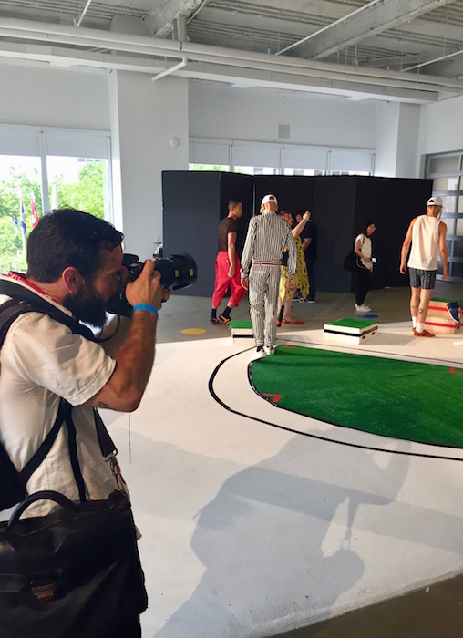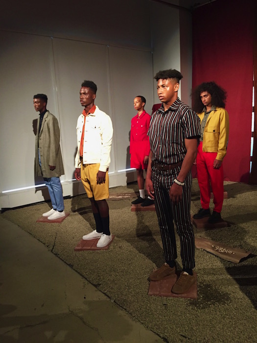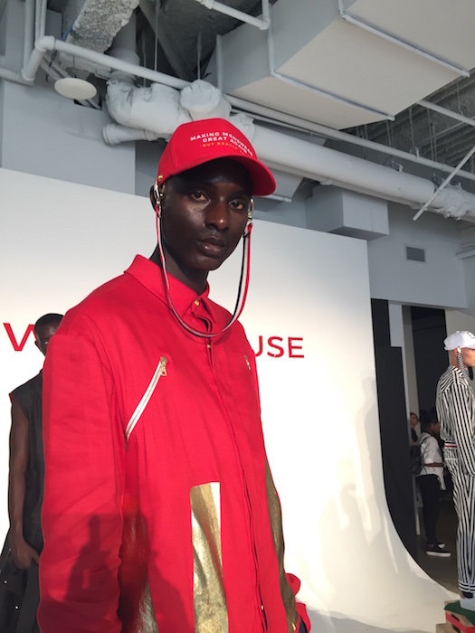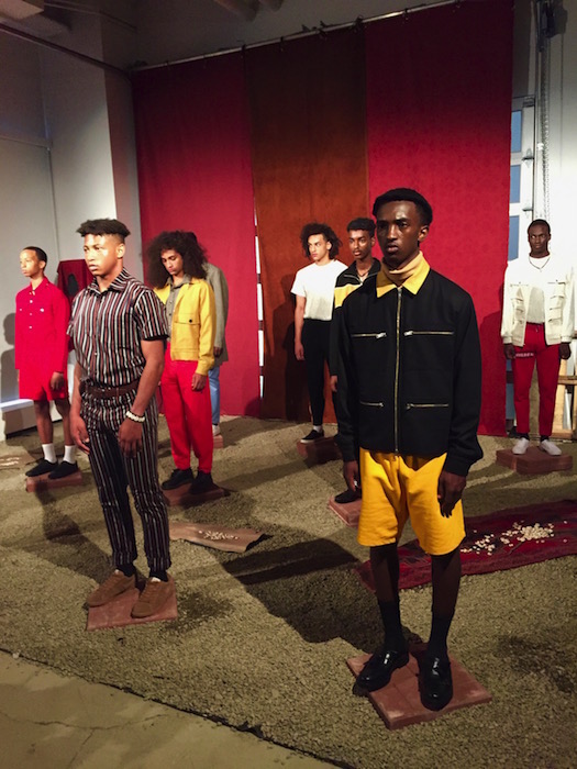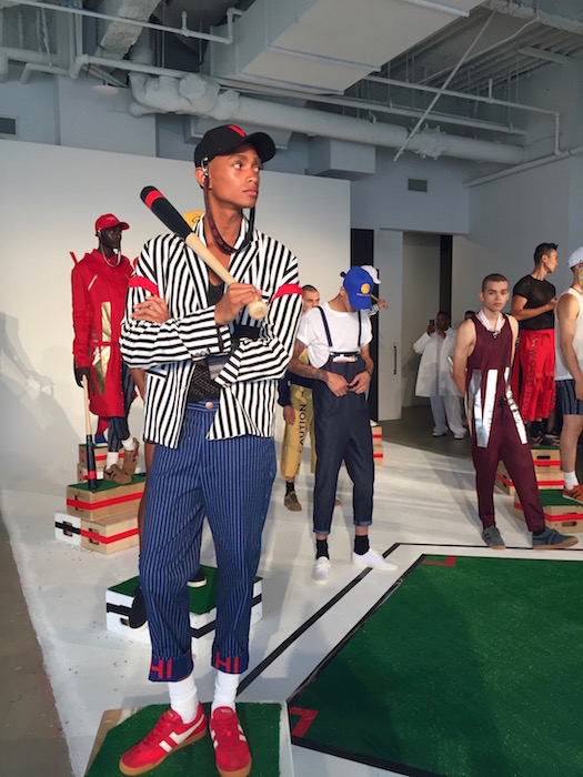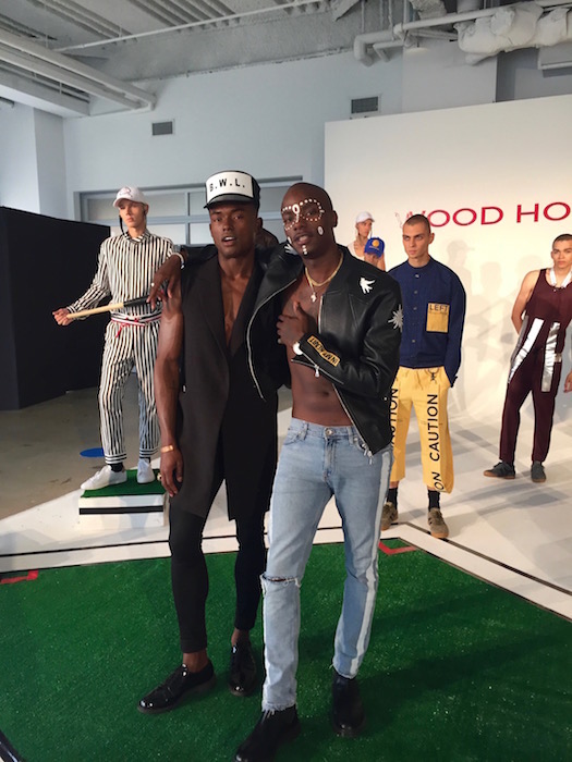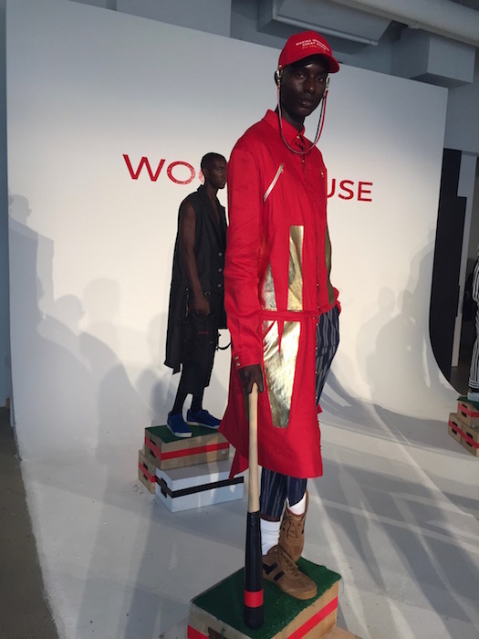 The WOODHOUSE collection immediately grabbed my attention with its unique mix of street style with an eastern edge, in blocks of color. Designer Julian Woodhouse’s Korean upbringing most definitely shined through as a reflection of his own personal sense of style. Models on podiums carrying bats like basemen at a baseball game, and athletic vision only added to the aesthetic of the HOT presentation. Special appearance by CFDA // NYFWM ambassador and musician Young Paris just added to the hot vibes, as well as the hellos with fellow Tumblr friends.