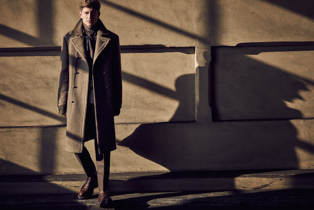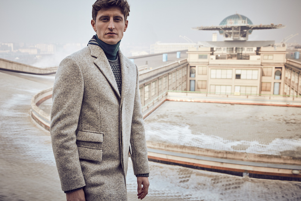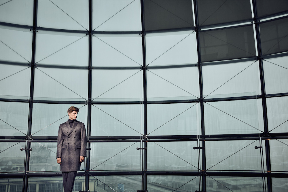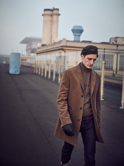 Sophisticated textures mingle with winter layering at BALDESSARINI fw17. The fall campaign, rich with architectural references highlight slim silhouettes for the modern gentleman. Denim, outerwear and fine gauge knits complement the earthy and dark neutral color palette.