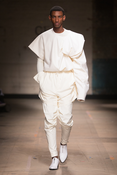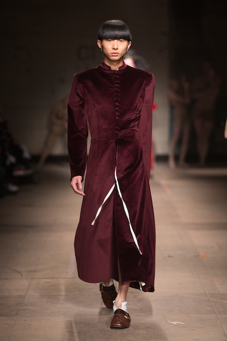 Fun times for the guys! A quick peek at some young and fresh talent to revv up our winter mood. Presented by Fashion East and Man shows, the young LFW fw17 menswear runway continues to flaunt hot sass – even for the guys. A quick look at the boldly beautiful including fave emerging designer Feng Chan Wang, Eden Loweth & Tom Barratt, and Charles Jeffrey LOVERBOY.