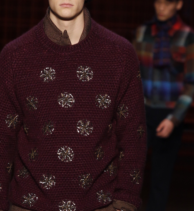 Highlights from the runway: MISSONI textures and patterns. A quick look at favorites! The younger suit is in, dusted with textures, and light hints of colors bursting through. Layered textures create subtle movements, and the cool Missoni nonconformist is walking with a relaxed confidence.