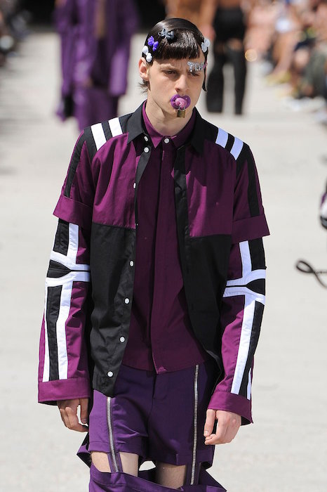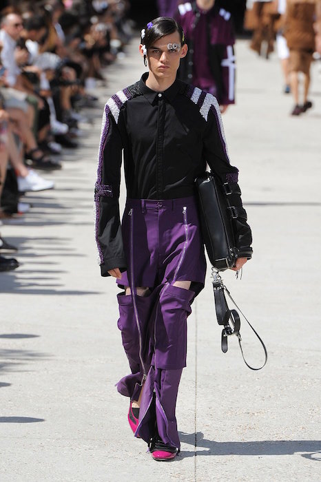HBA | Hood by Air surprisingly (to us) showed in Paris, with a chock full of details ranging from embellishment to zippers to pleats, and alot of leather – with a purple flavor.
