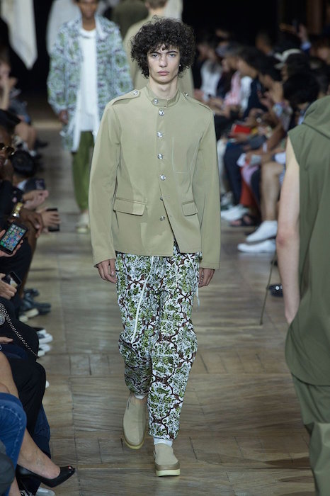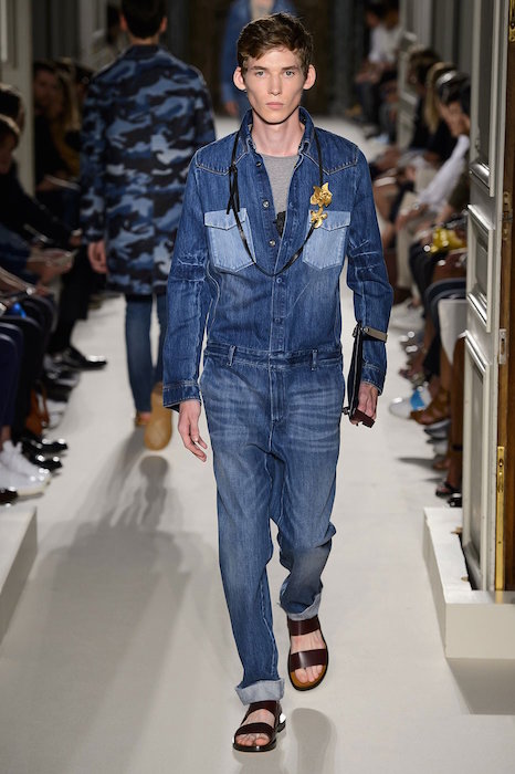Valentino brought us to a youthful tropical location with their laid-back Hawaiian shirts and embroidered silk bombers. Yellow, neutrals and denim were paired with colorful patterns and embroideries creating a delicate balance of casual daring. Familiar faces include Janis Ancens, Piero Mendez, and Ben Allen, with fave looks including the denim jumpsuit + casual jackets.