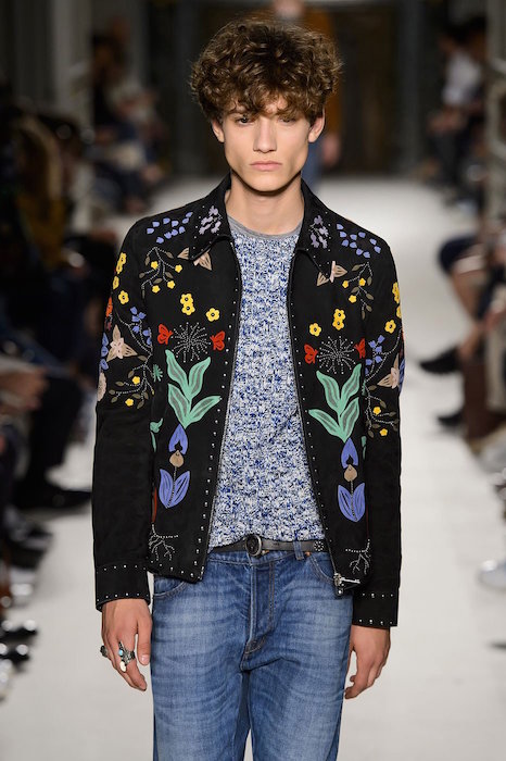 Hotter than ever, the menswear collections recently presented in Paris have been filled with rich silk fabrics, layers of patterns, some relaxed fits and slim fitting tailored pieces. Floral and tropical motifs, as well as stars took center stage, with more traditionally feminine fabrications and embellishments taking over the bolder menswear runway during PFW. Here’s a little glimpse of what we’re loving.