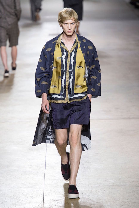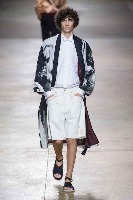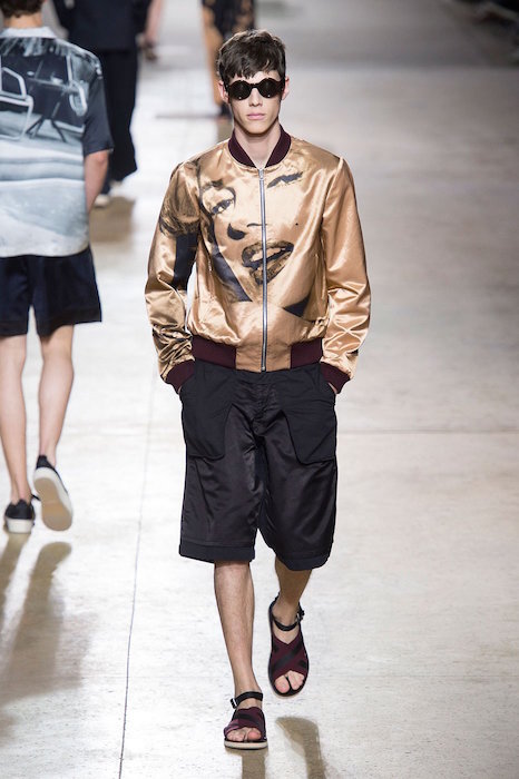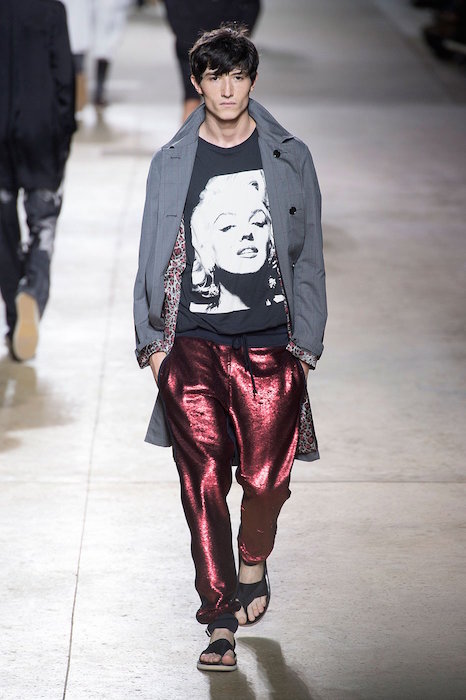 Dries Van Noten’s ss16 collection was filled Marilyn Monroe images printed onto suits, tank tops, and shorts. The collection’s appropriation of the famous celebrity felt like an ode to Andy Warhol’s pop art movement, with a relaxed fit adding to the summer vibe. Piero Mendez added to the finale flavor with a marilyn chic lounge robe- ready for a girl to borrow.
