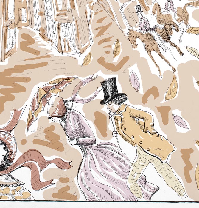 Nadia Roden Scarf- A handmade scarf by artist and illustrator Nadia Roden. Captures the romance and intrigue of La Boheme.