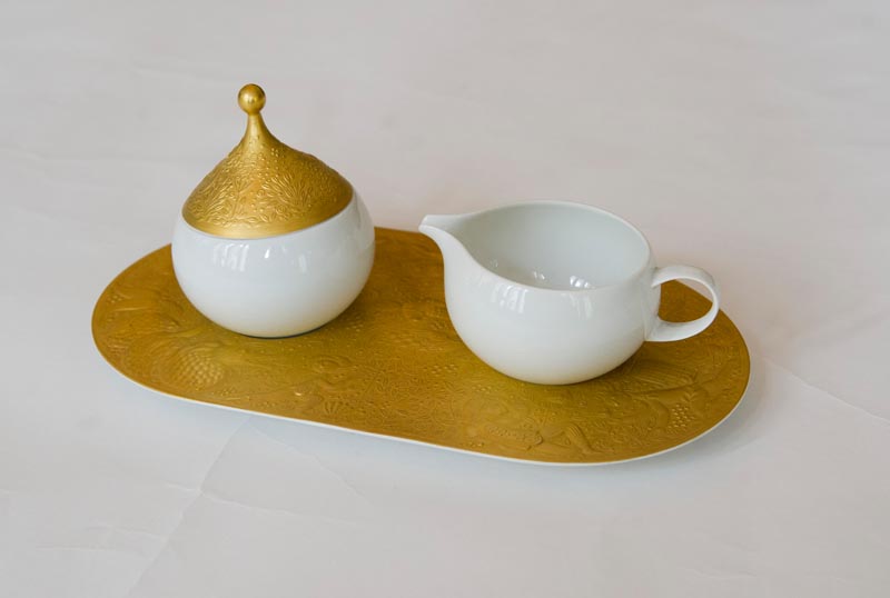 Rosenthal Pickard China- Complete seven piece place setting set designed by Bjorn Wiinbland and features inspiration from the Magic Flute production.